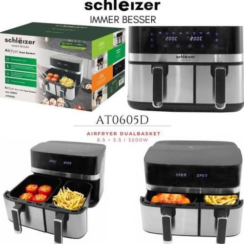 schlëizer Friteuse électrique sans huile14L / MAX3200W – tactile – 2 paniers – AT0902D