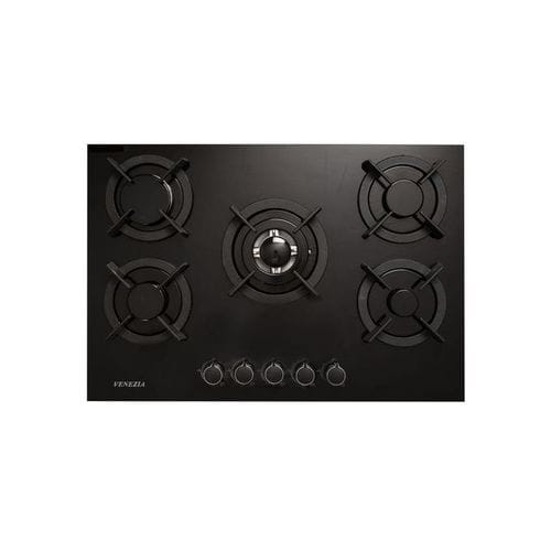 Venezia Plaque De Cuisson 5 Feux À Gaz Électrique 70 Cm En Verre / Noir